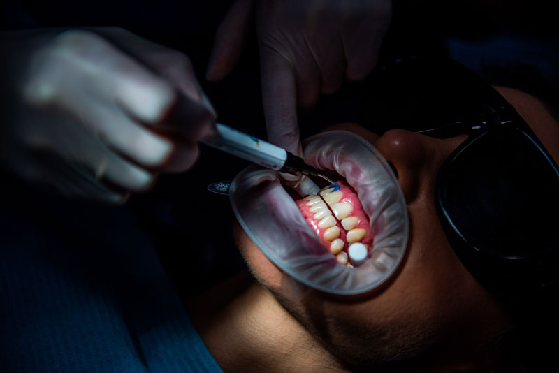 • Blanqueamiento dental en clínica mediante láser diodos, que consiste en la colocación sobre el diente de una sustancia que libera oxígeno pero a mayor concentración que en los blanqueamientos ambulatorios. En las operaciones de blanqueamiento de dientes tanto vitales como no vitales, la aplicación de láser asegura la máxima acción blanqueante en brevísimo tiempo. Esto ocurre con variaciones térmicas mínimas que preservan la vitalidad pulpar.